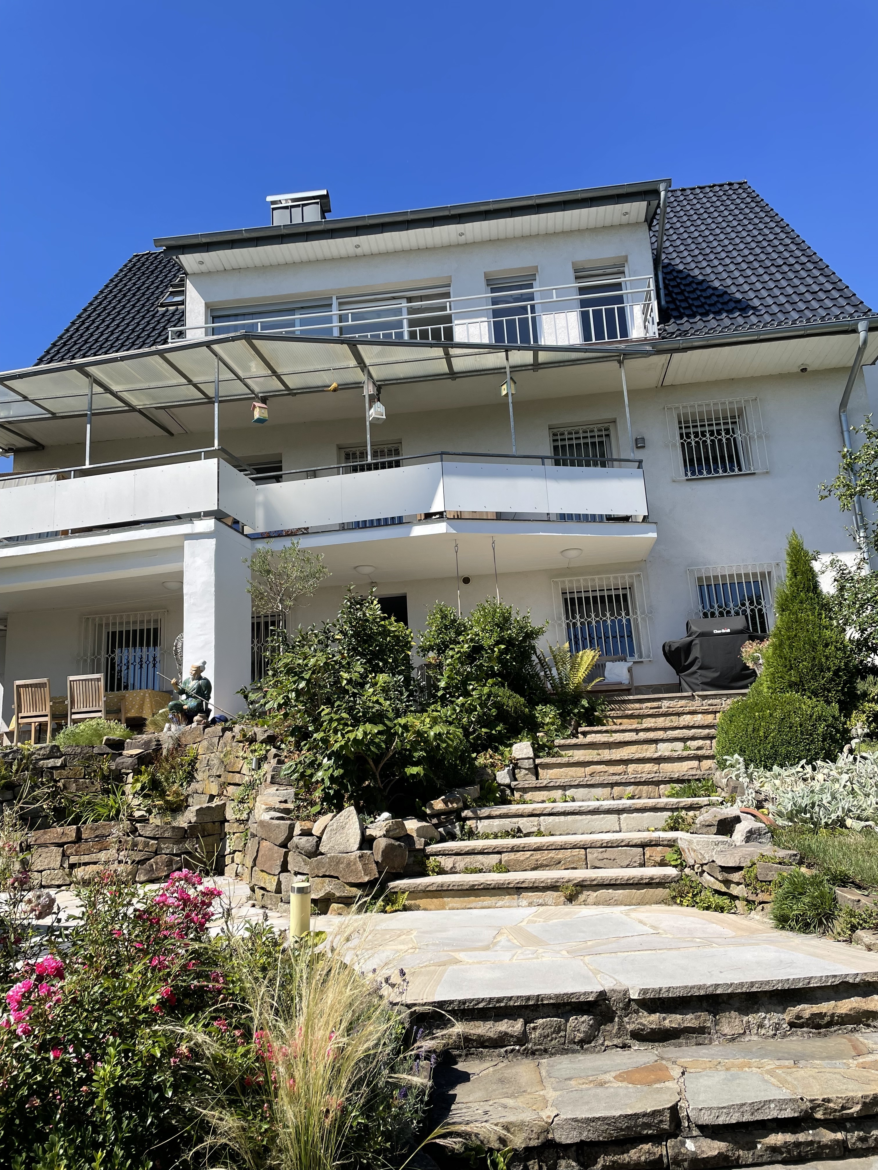 Das Haus wurde umfassend und mit gehobener Qualität renoviert, sodass es sich in einem erstklassigen Zustand präsentiert. Hier genießen sowohl Bewohner als auch Investoren hohen Wohnkomfort. Drei Balkone laden dazu ein, die Aussicht auf die Umgebung zu genießen, während ein liebevoll gestalteter Garten mit Terrasse zum Entspannen und Verweilen einlädt.